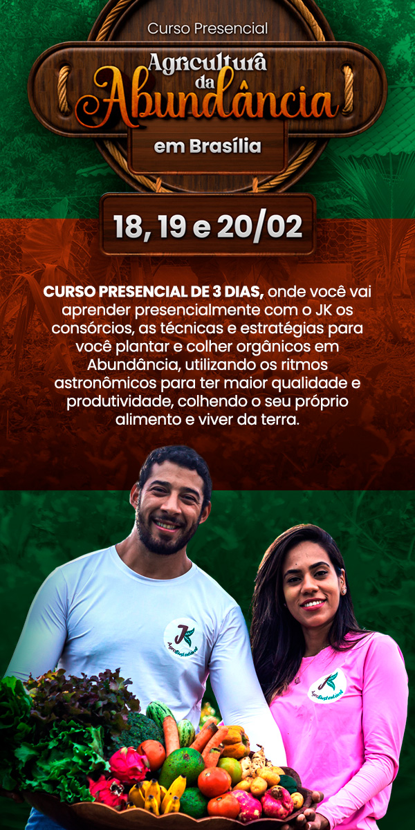No Curso da Agricultura da Abundância você vai aprender na prática a plantar de forma orgânica para produzir em Abundância, através do Método da Agricultura da Abundância e a aplicação do Fundamento RTC (ritmos astronômicos, técnicas e estratégias para gerar abundância, consórcio da abundância).